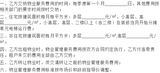 受有关部门或单位的委托,甲方可提供水费、电费、燃(煤)气费、房租等代收代缴收费服务(代收代缴费用不属于物业管理服务费用),收费标准执行政府规定。
