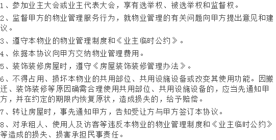 8、每个月向乙方公布物业管理费用收支账目。